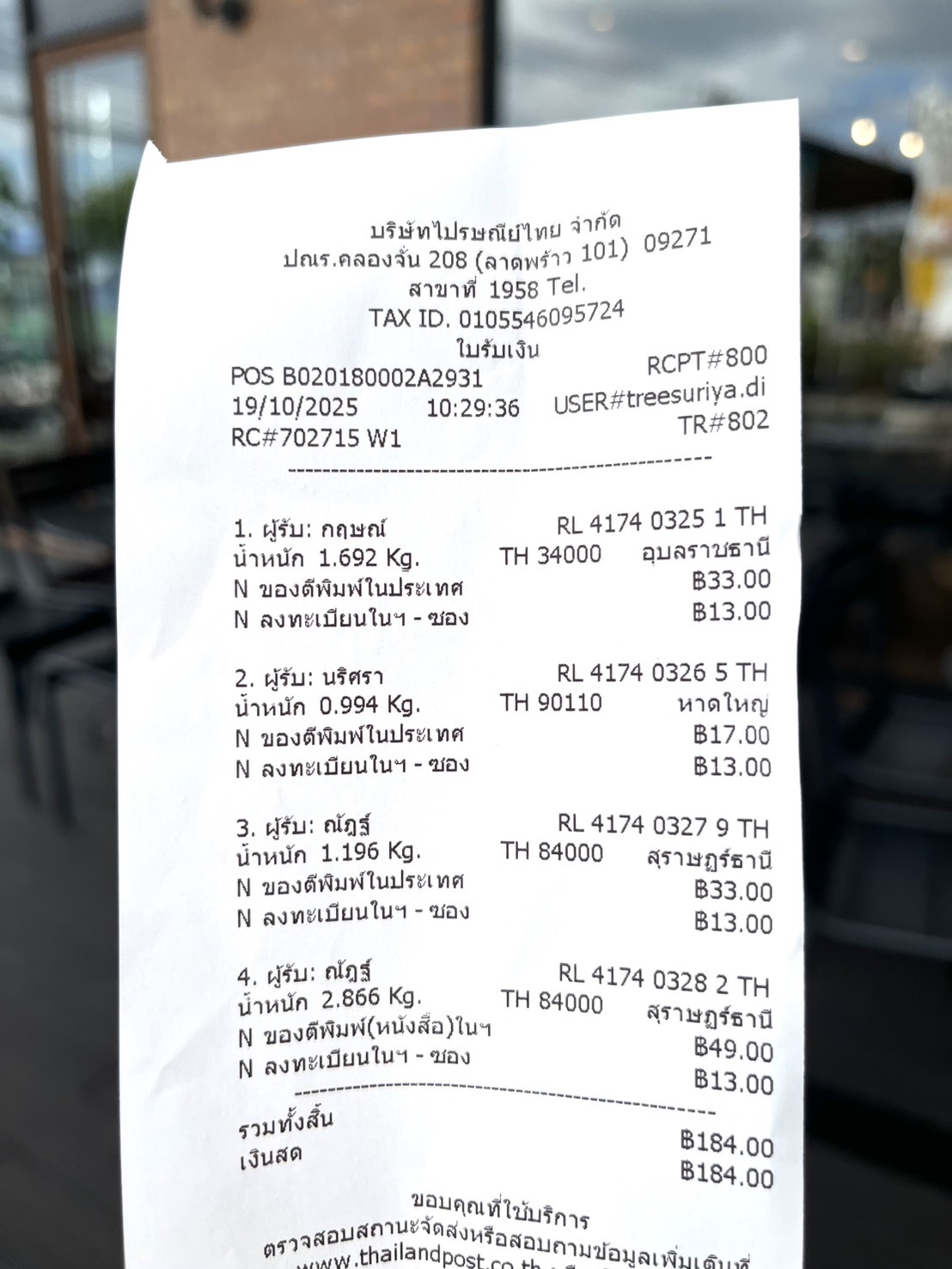แจ้งเลขรหัสพัสดุ วันอาทิตย์ที่ 19 ตุลาคม 2568