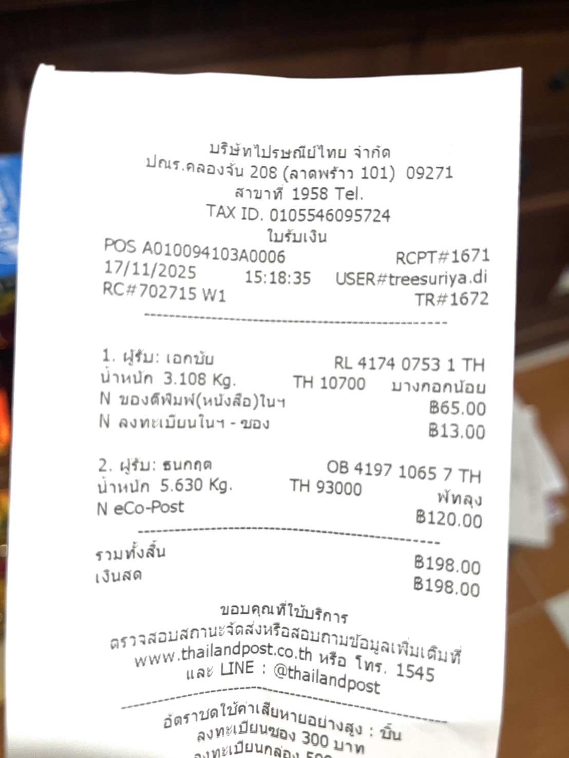 แจ้งเลขรหัสพัสดุ วันจันทร์ที่ 17 พฤศจิกายน 2568