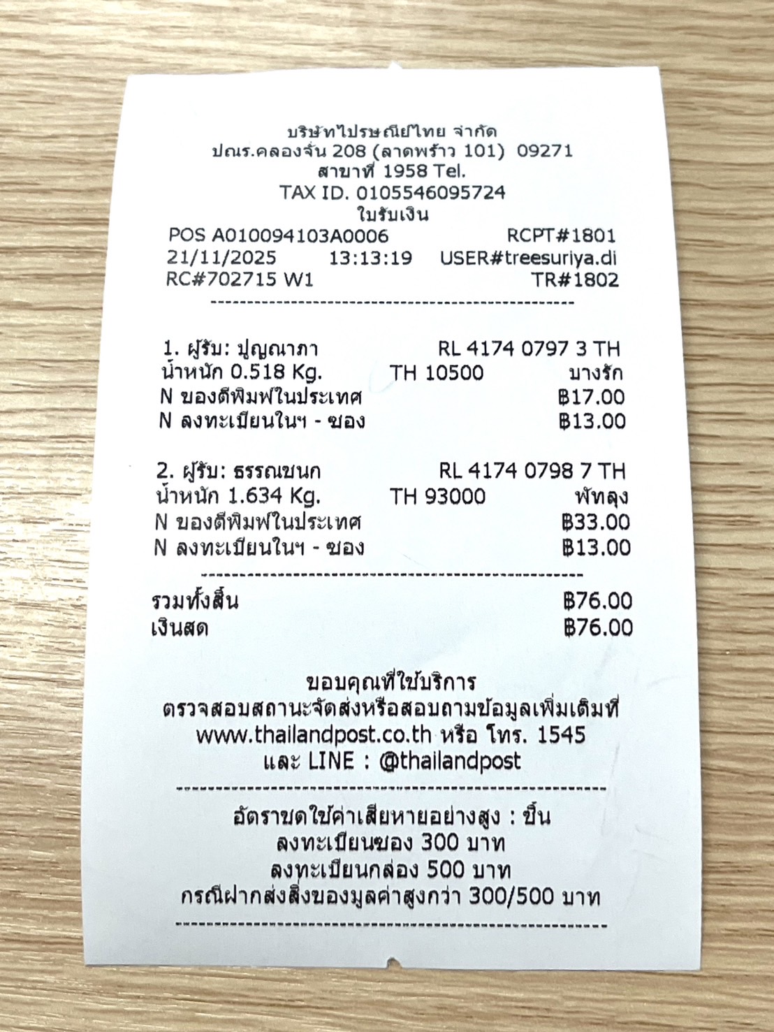 แจ้งเลขรหัสพัสดุ วันศุกร์ที่ 21 พฤศจิกายน 2568