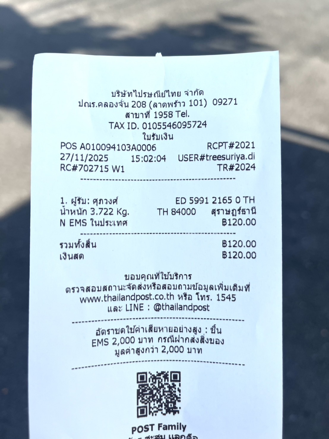 แจ้งเลขรหัสพัสดุ วันพฤหัสบดีที่ 27 พฤศจิกายน 2568