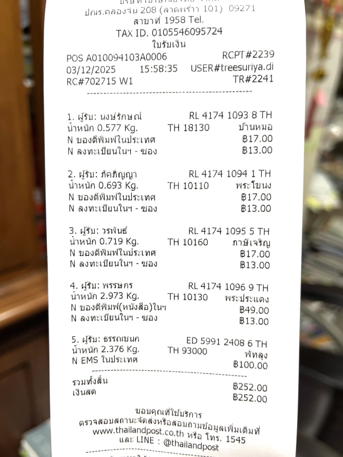 แจ้งเลขรหัสพัสดุ วันพุธที่ 3 ธันวาคม 2568