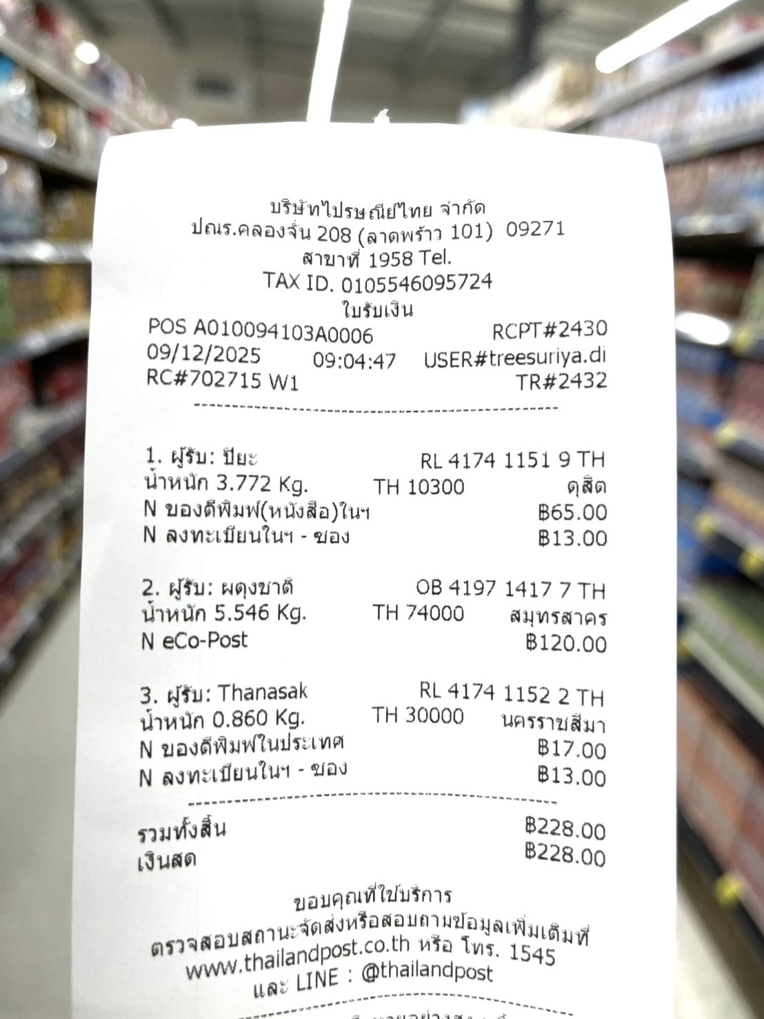 แจ้งเลขรหัสพัสดุ วันอังคารที่ 9 ธันวาคม 2568