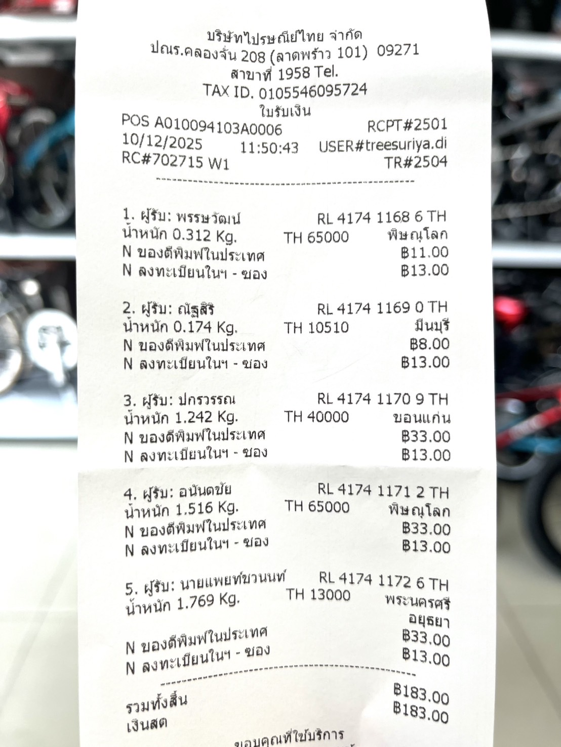 แจ้งเลขรหัสพัสดุ วันพุธที่ 10 ธันวาคม 2568